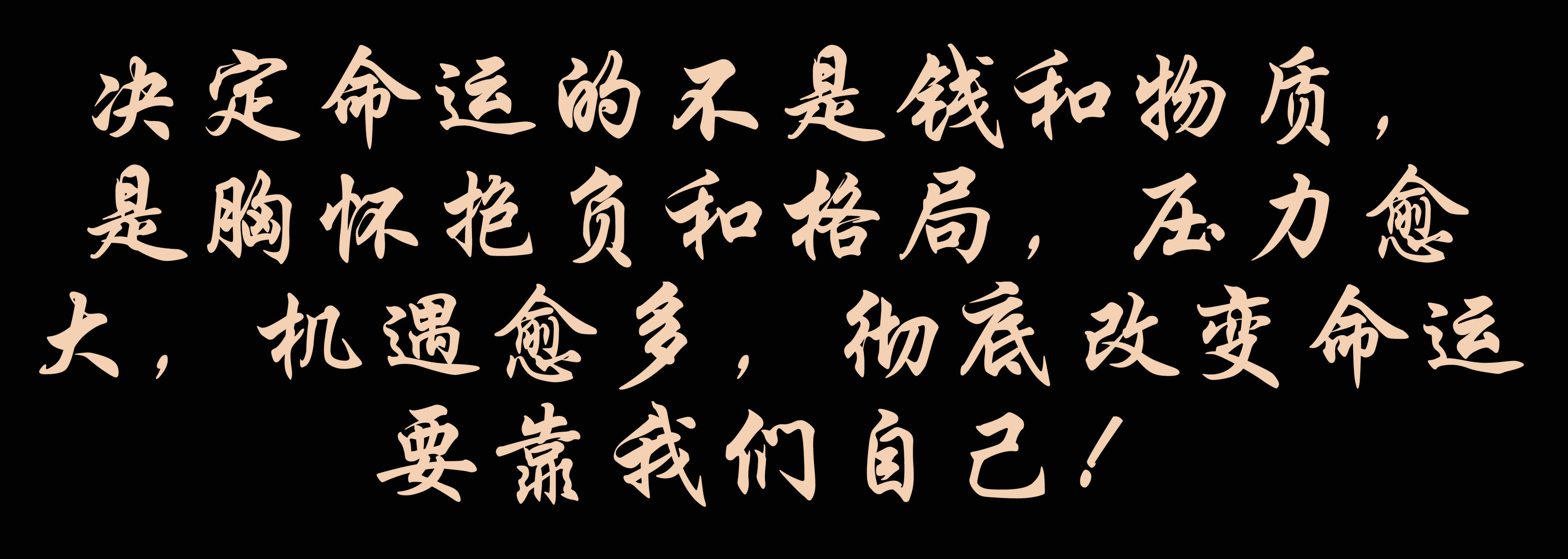 苦難是成就一切最大的天機,華恒遠需要一次改變命運的機遇!這正是我謀略未來最大的底氣,決定命運的不是錢和物質(zhì),是胸懷抱負和格局,壓力愈大,機遇愈多,徹底改變命運要靠我們自己!