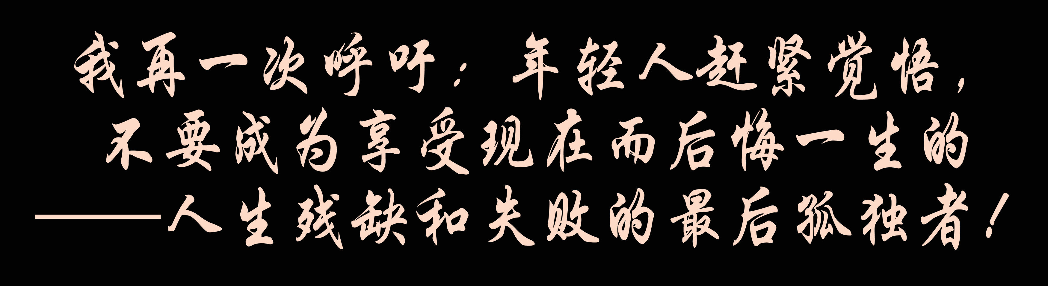 我再一次呼吁:年輕人趕緊覺悟,不要成為享受現(xiàn)在而后悔一生的——人生殘缺和失敗的最后孤獨(dú)者!