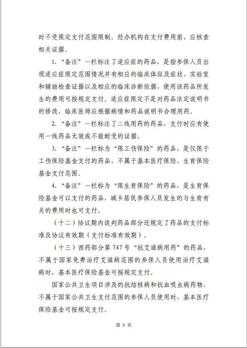 1.“備注”一欄標注了適應(yīng)癥的藥品,是指參保人員出現(xiàn)適應(yīng)癥限定范圍情況并有相應(yīng)的臨床體征及癥狀、實驗室和輔助檢查證據(jù)以及相應(yīng)的臨床診斷依據(jù),使用該藥品所發(fā)生的費用可按規(guī)定支付。適應(yīng)癥限定不是對藥品法定說明書的修改,臨床醫(yī)師應(yīng)根據(jù)病情和藥品說明書合理用藥。