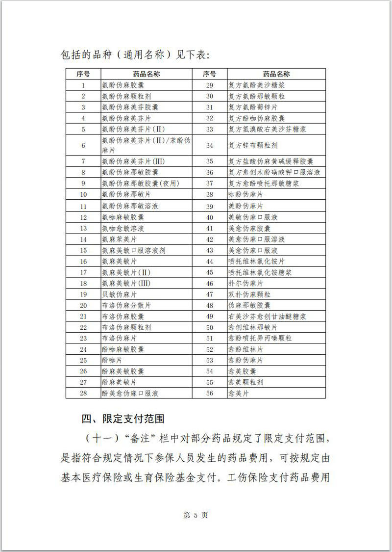 (四)《藥品目錄》包括限工傷保險基金準予支付費用的品種5個;限生育保險基金準予支付費用的品種4個。工傷保險和生育保險支付藥品費用時不區(qū)分甲、乙類。