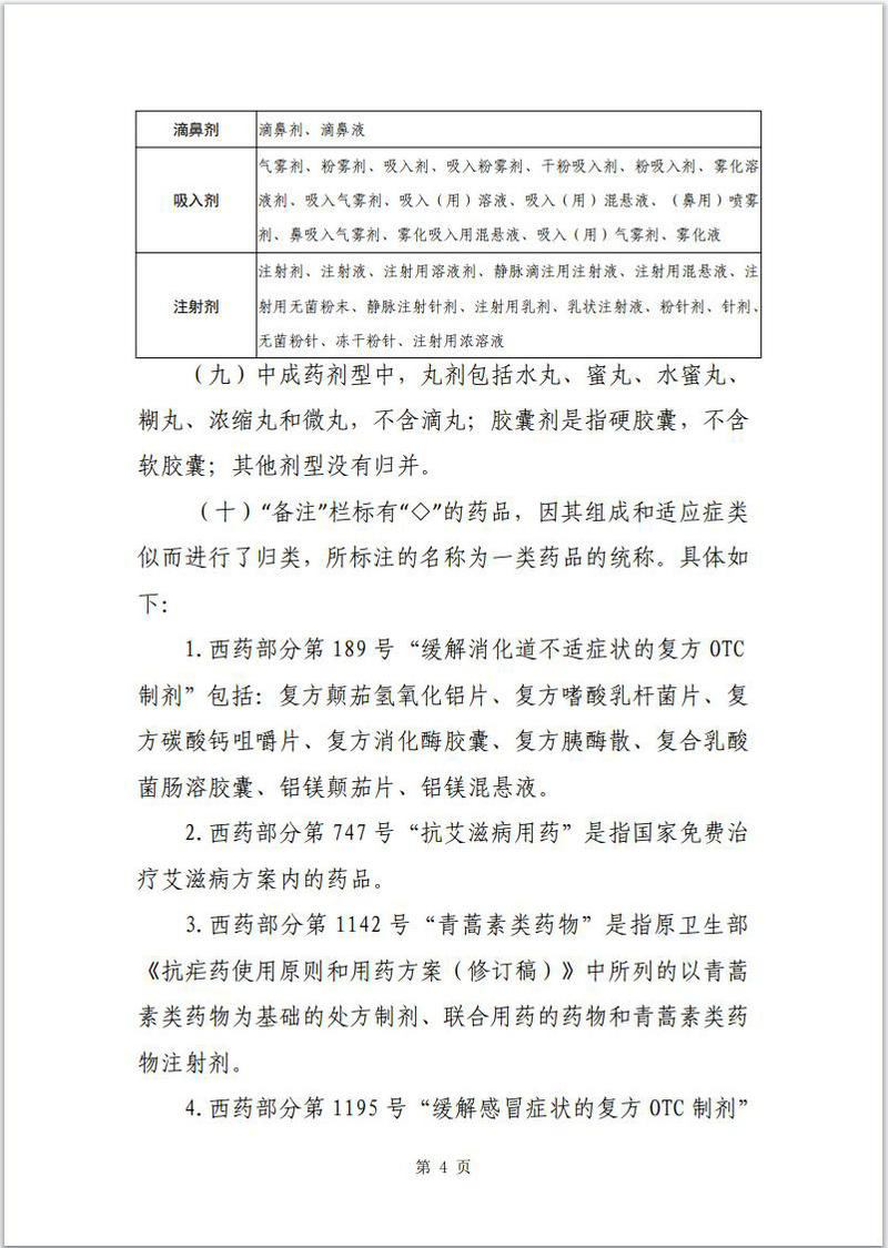 (九)中成藥劑型中,丸劑包括水丸、蜜丸、水蜜丸、糊丸、濃縮丸和微丸,不含滴丸;膠囊劑是指硬膠囊,不含軟膠囊;其他劑型沒有歸并。