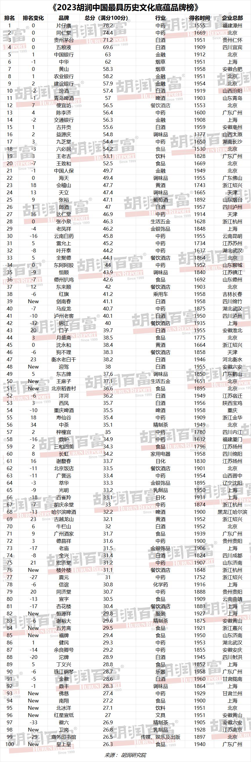 胡潤研究院發(fā)布《2023胡潤中國最具歷史文化底蘊品牌榜》