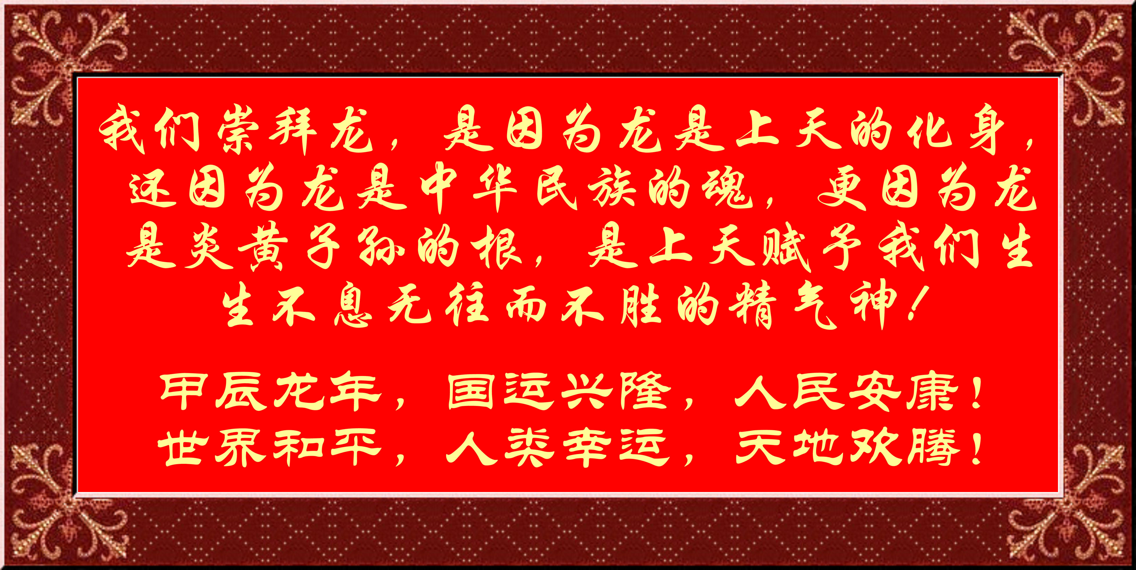甲辰龍年,國(guó)運(yùn)興隆,人民安康!世界和平,人類(lèi)幸福,天地歡騰!