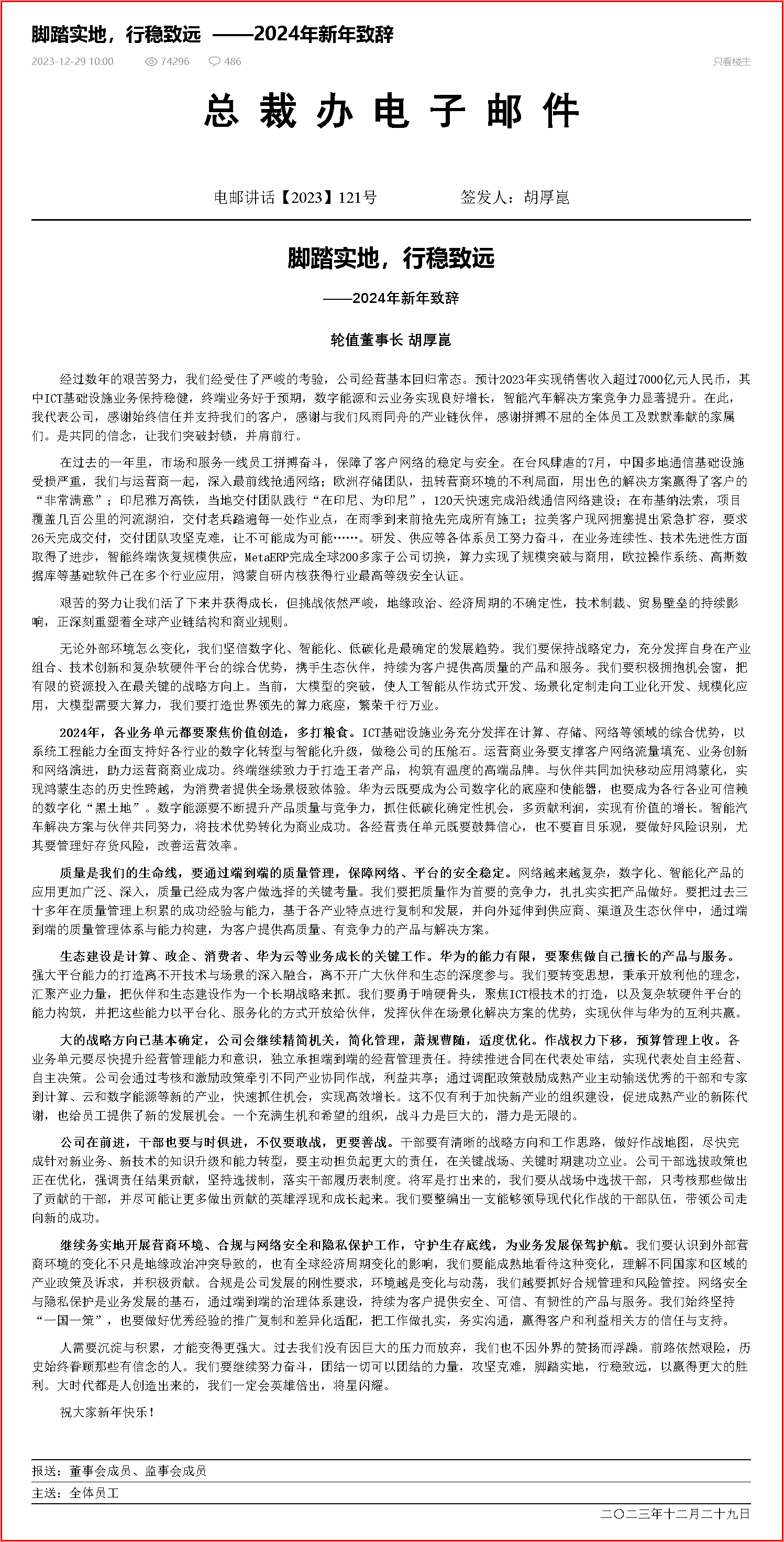 腳踏實(shí)地,行穩(wěn)致遠(yuǎn)——2024年新年致辭