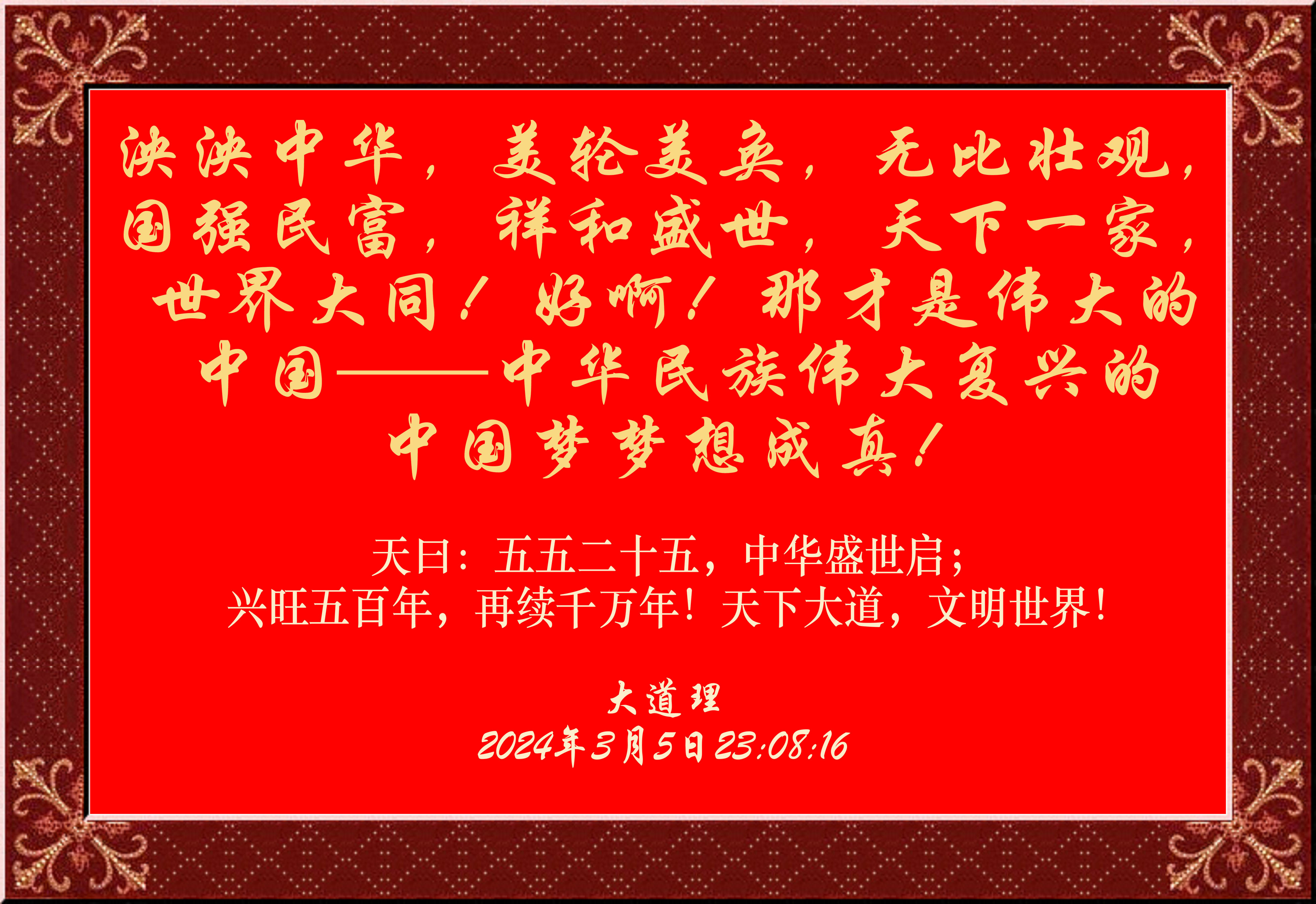三十年后是哪一年?2054年!已經(jīng)是建國(guó)一百零五年的時(shí)候了!那個(gè)時(shí)候中華大地是什么景致和美景呢?泱泱中華,美輪美奐,無(wú)比壯觀,國(guó)強(qiáng)民富,祥和盛世,天下一家,世界大同!
