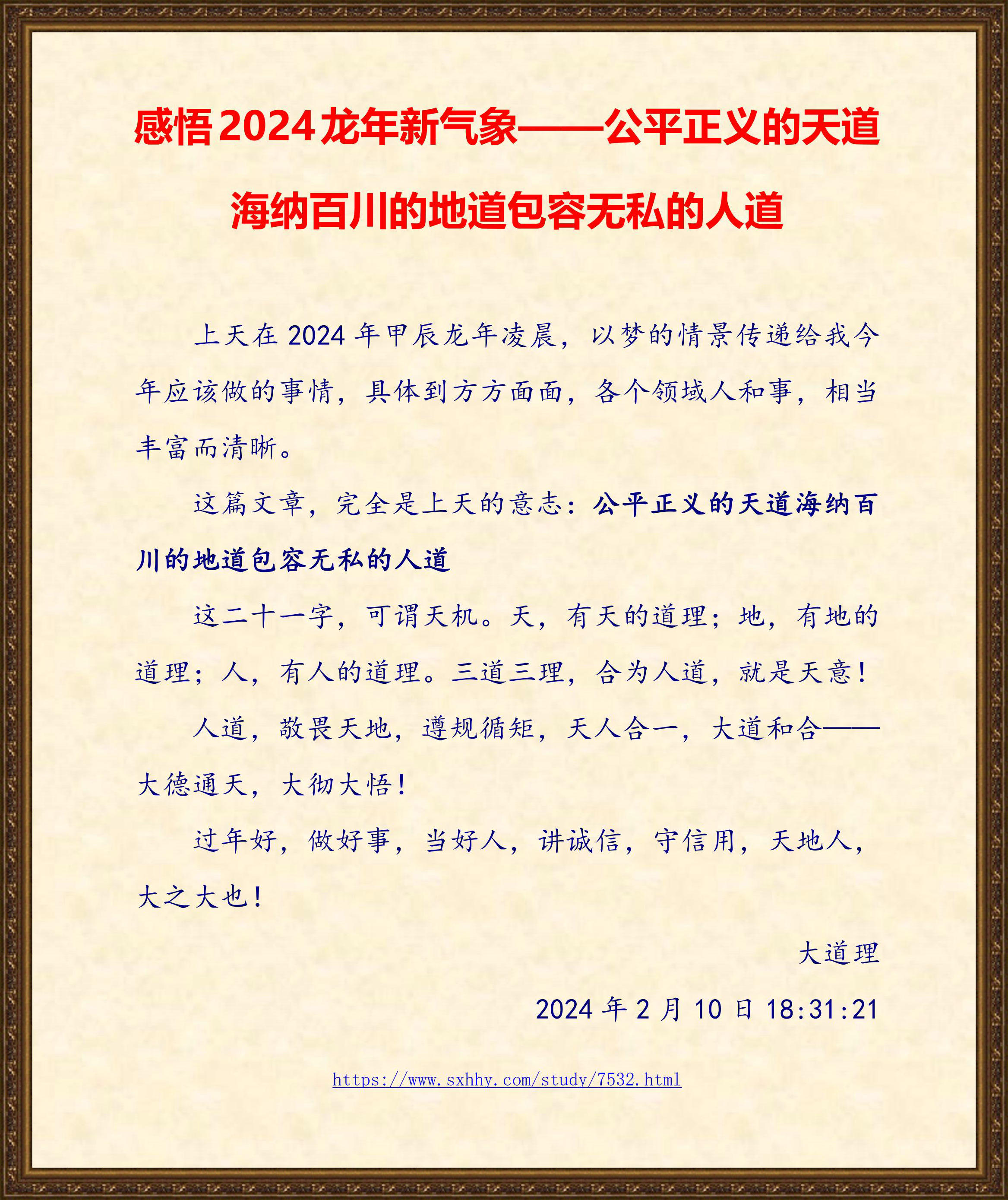 7. 感悟2024龍年新氣象——公平正義的天道海納百川的地道包容無私的人道2024-02-10