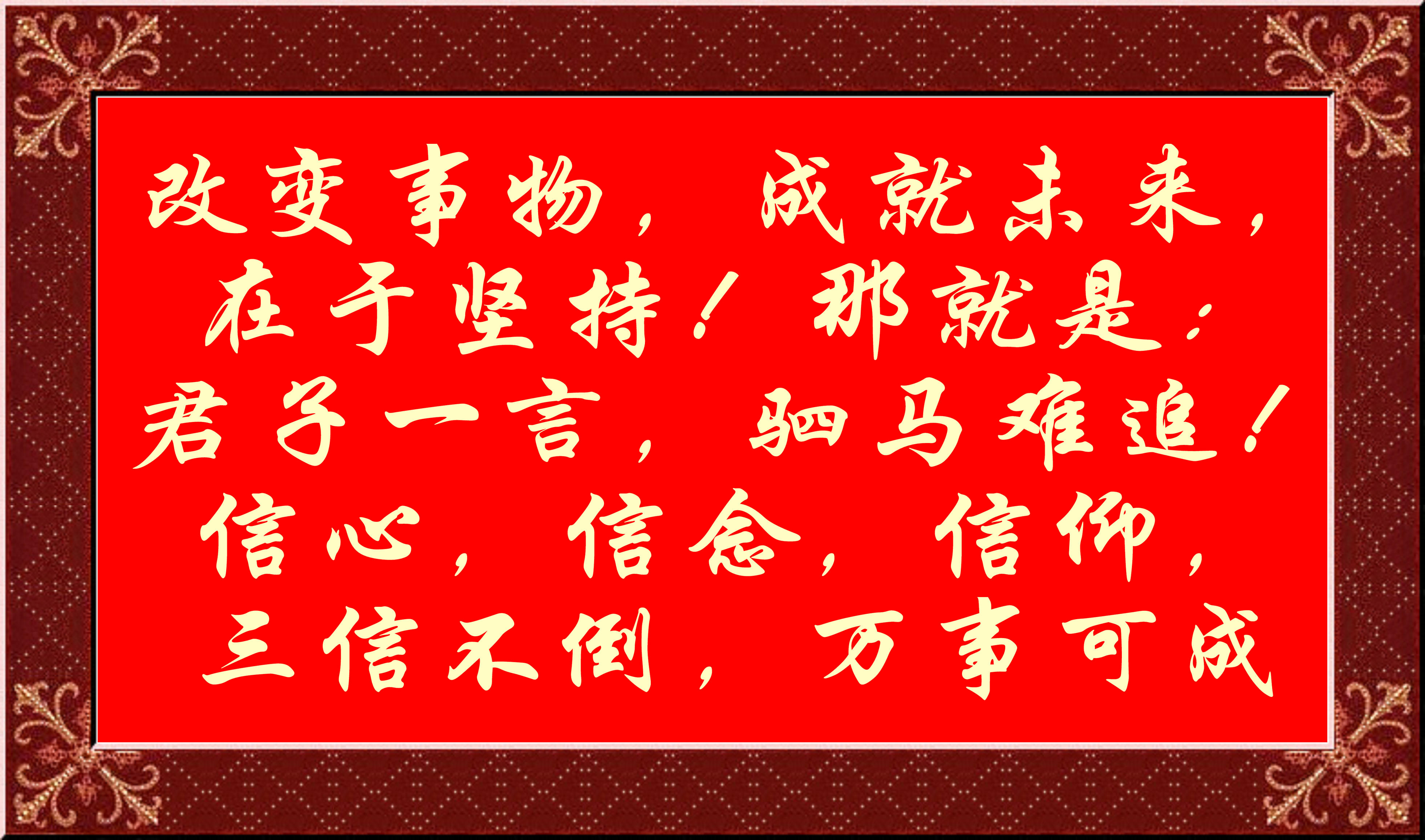 改變事物,成就未來,在于堅持!那就是:君子一言,駟馬難追!