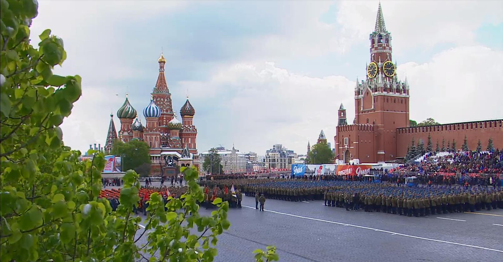 10:00,克里姆林宮的鐘聲敲響。勝利閱兵開始。閱兵式由閱兵司令奧列格·薩柳科夫指揮。