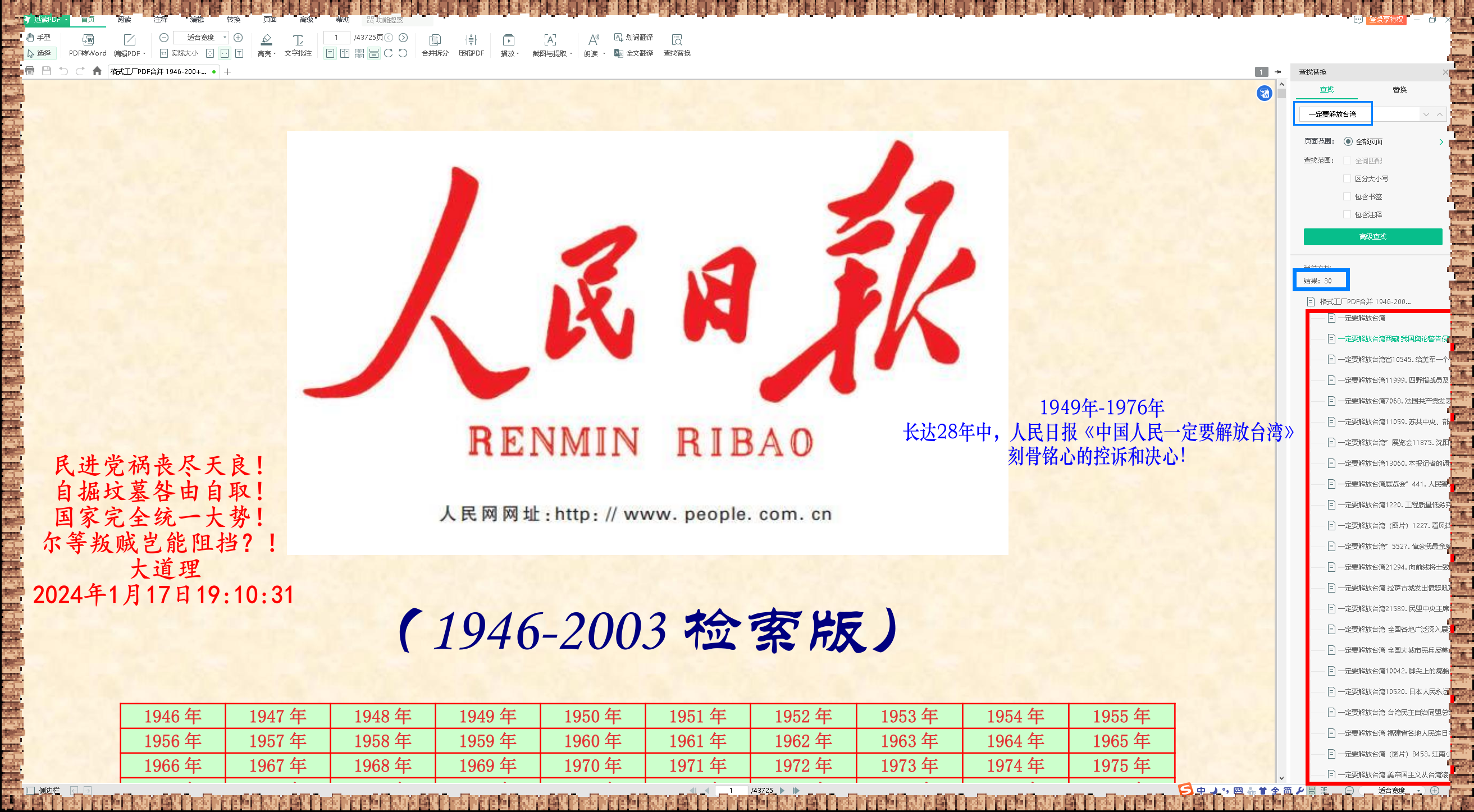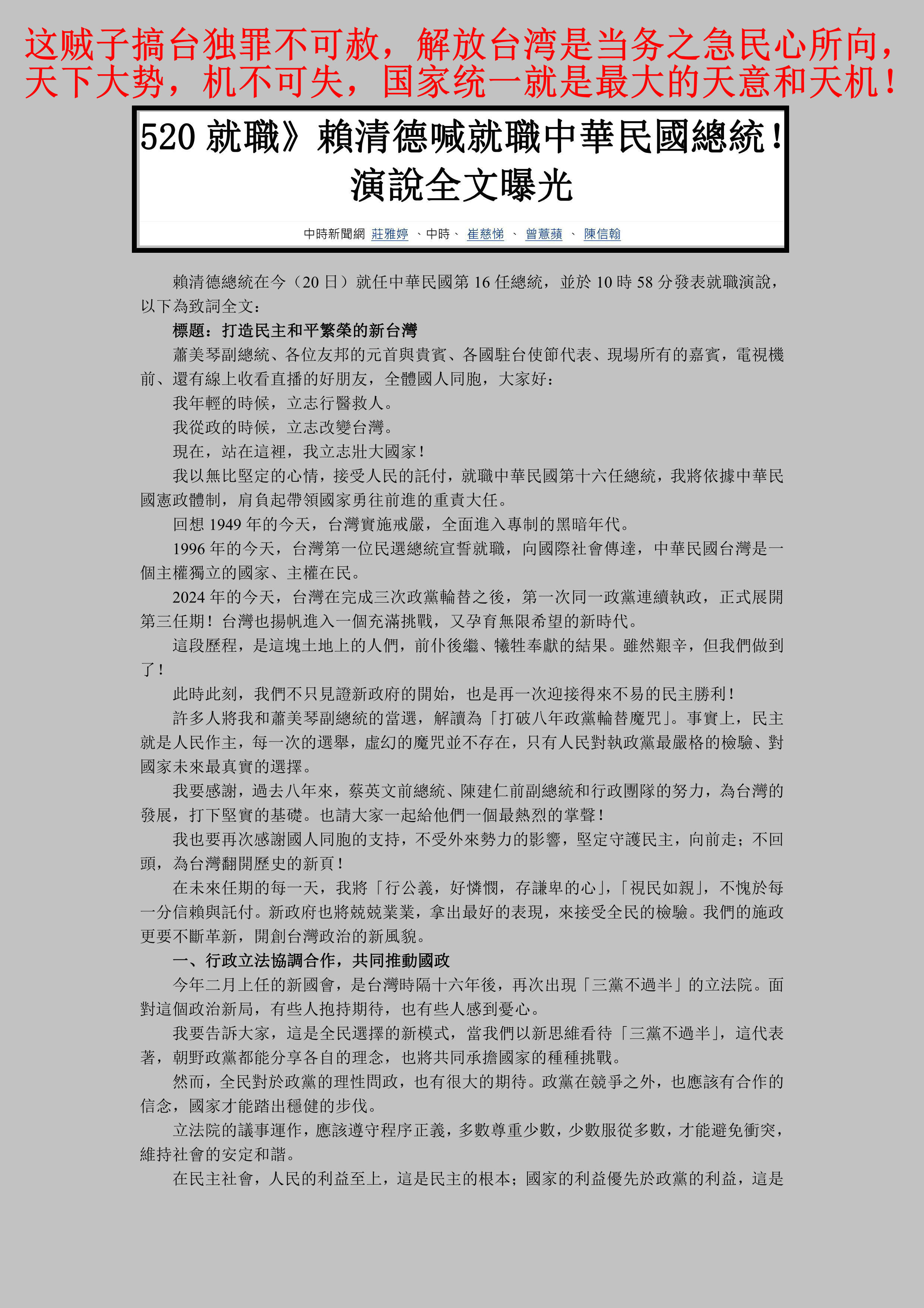 中國(guó)人民(包括臺(tái)灣人民)將絕對(duì)不能容忍美國(guó)帝國(guó)主義對(duì)臺(tái)灣或任何其他中國(guó)領(lǐng)土的非法侵略,同樣地亦絕對(duì)不能容忍國(guó)民黨反動(dòng)派把臺(tái)灣作為最后掙扎的根據(jù)地。中國(guó)人民解放斗爭(zhēng)的任務(wù)就是解放全中國(guó),直到解放臺(tái)灣、海南島和屬于中國(guó)的最后一寸土地為止。由于中國(guó)形勢(shì)已發(fā)生巨大變化,中國(guó)人民解放斗爭(zhēng)的勝利一定要在不久的時(shí)間內(nèi)全部實(shí)現(xiàn)。中國(guó)人民一定要解放臺(tái)灣,一定要解放全中國(guó)。(新華社十五日電)