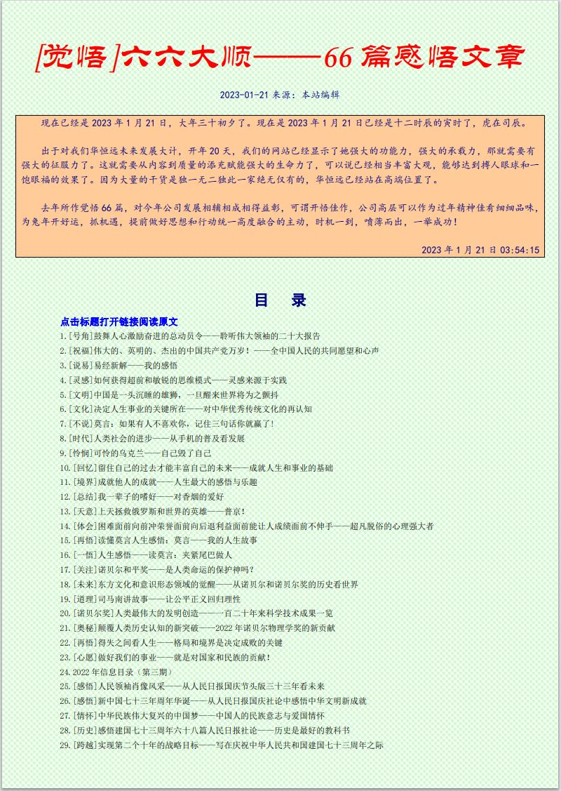 【行業(yè)資料】[覺(jué)悟]六六大順——66篇感悟文章