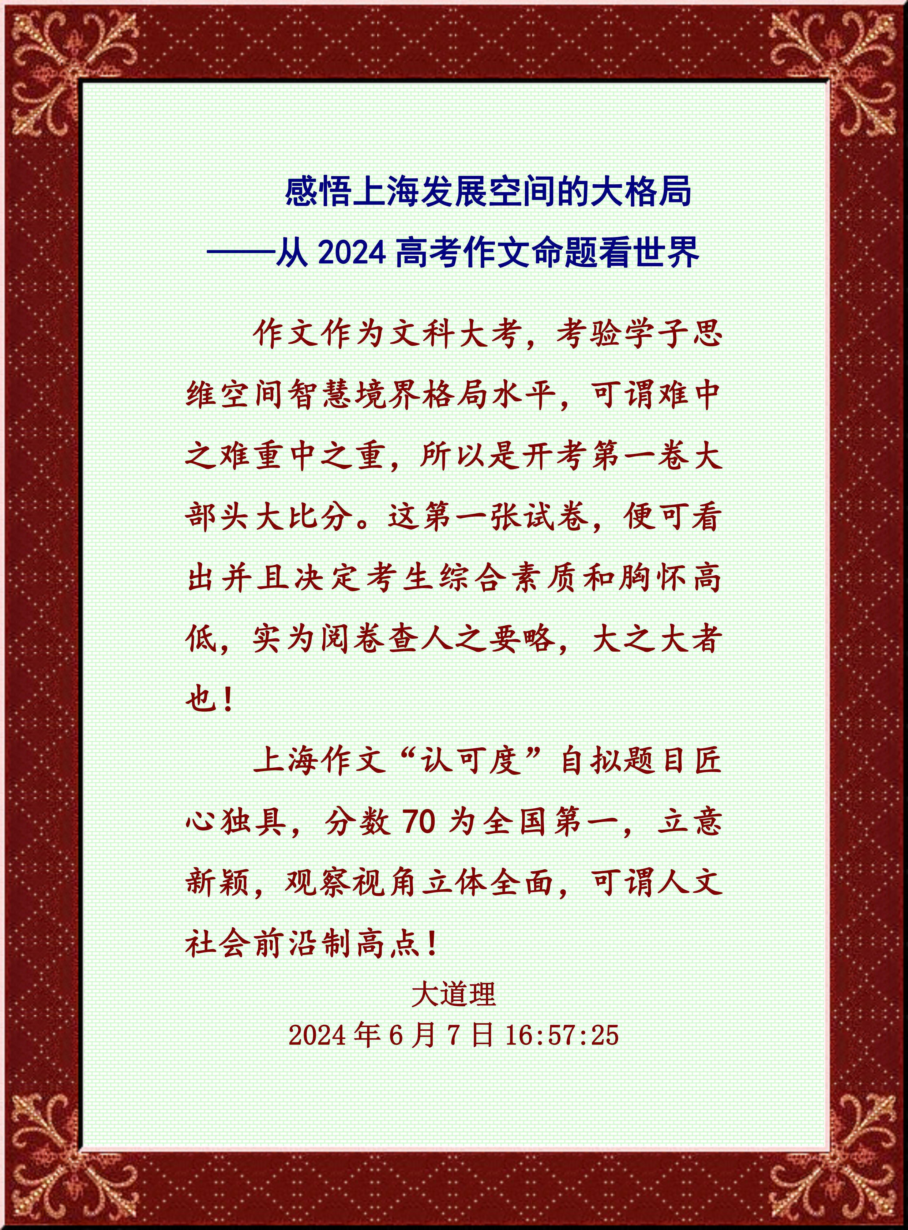上海作文“認可度”自擬題目匠心獨具,分數70為全國第一,立意新穎,觀察視角立體全面,可謂人文社會前沿制高點!