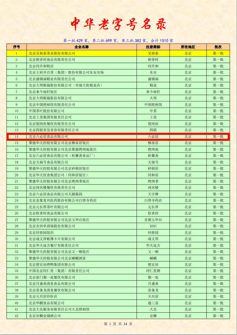 前門外有一條胡同叫糧食店街,臨街有一家店鋪,歷史悠久,聞名遐邇,這就是已有四百十多年歷史的六必居醬園。據(jù)史料記載,六必居始建于明朝嘉靖九年(公元1530年),由山西臨汾人趙氏三兄弟創(chuàng)辦。由于趙氏兄弟善于經(jīng)營,加之六必居開業(yè)時(shí)所選擇的地理位置好,所以買賣一直很興隆。后來又?jǐn)U充了門面,由開始時(shí)的兩間小店堂,擴(kuò)充為四間門面,且后邊還增設(shè)了加工的作坊,使之生意越做越大。最初,這里是一家酒店,為保證酒味醇香甘美,這家作坊曾制訂了六條操作規(guī)則:黍稻必齊,湛之必潔、陶瓷必良、火候必得、水泉必香?!傲鼐印庇纱说妹?。
