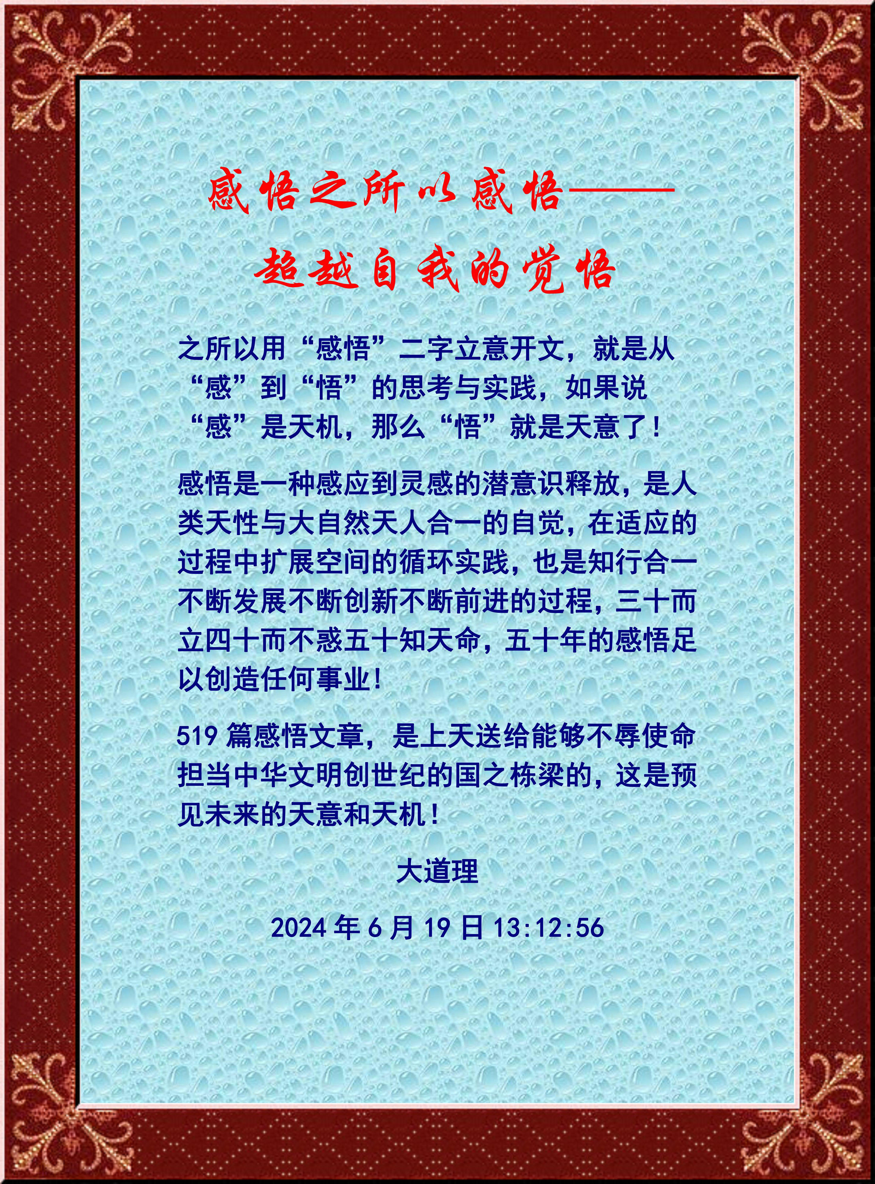 519篇感悟文章,是上天送給能夠不辱使命擔(dān)當(dāng)中華文明創(chuàng)世紀(jì)的國(guó)之棟梁的,這是預(yù)見未來(lái)的天意和天機(jī)!