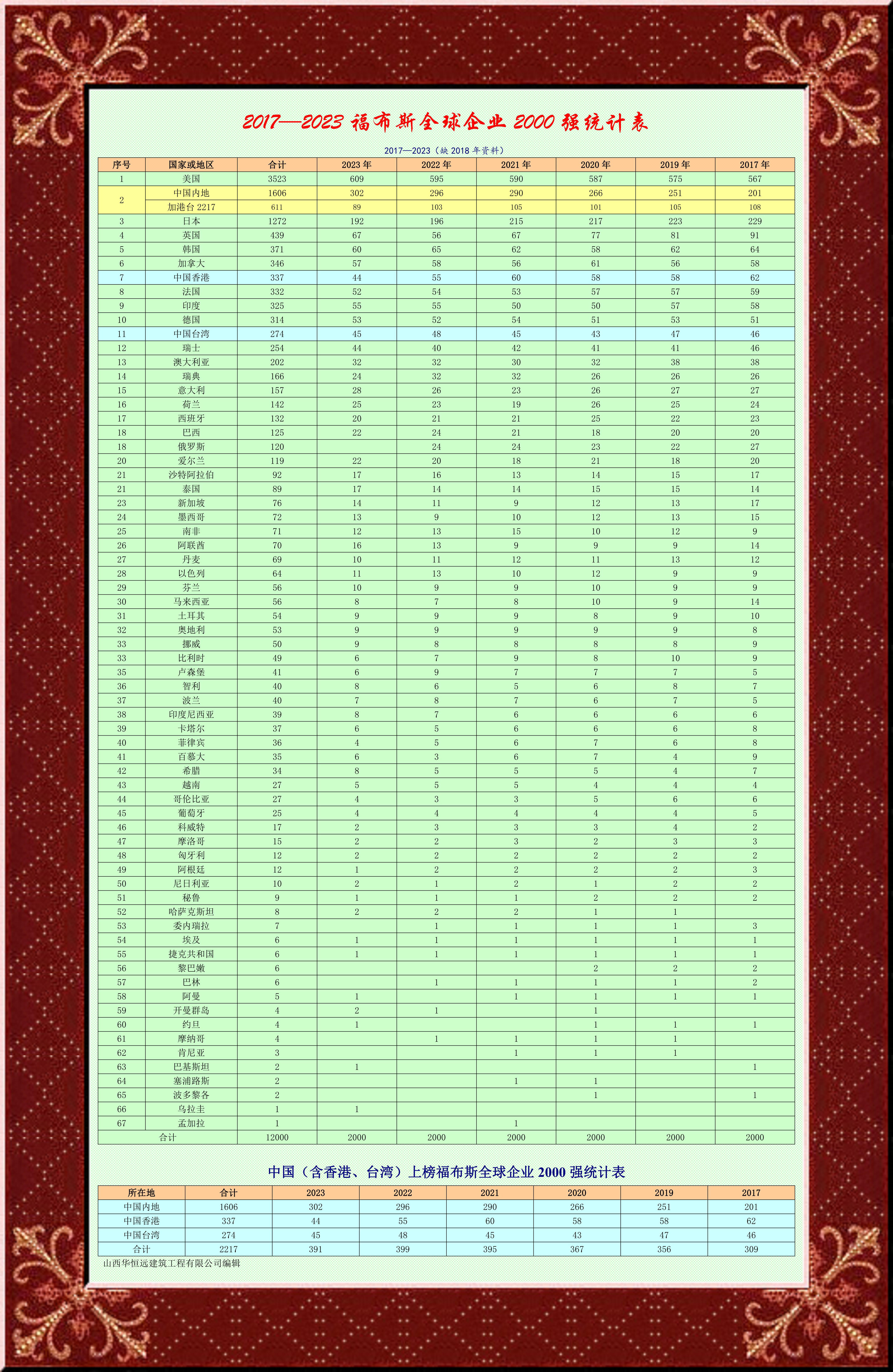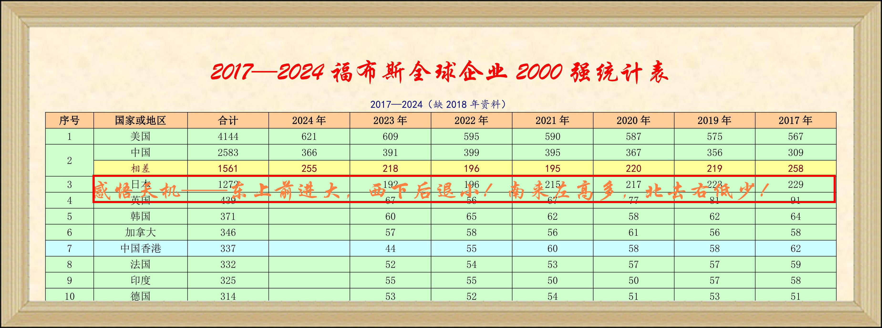 今年福布斯全球2000強(qiáng)榜單,中美以621比366分別拿下世界大公司總數(shù)第一第二名,差距還是比較大的!