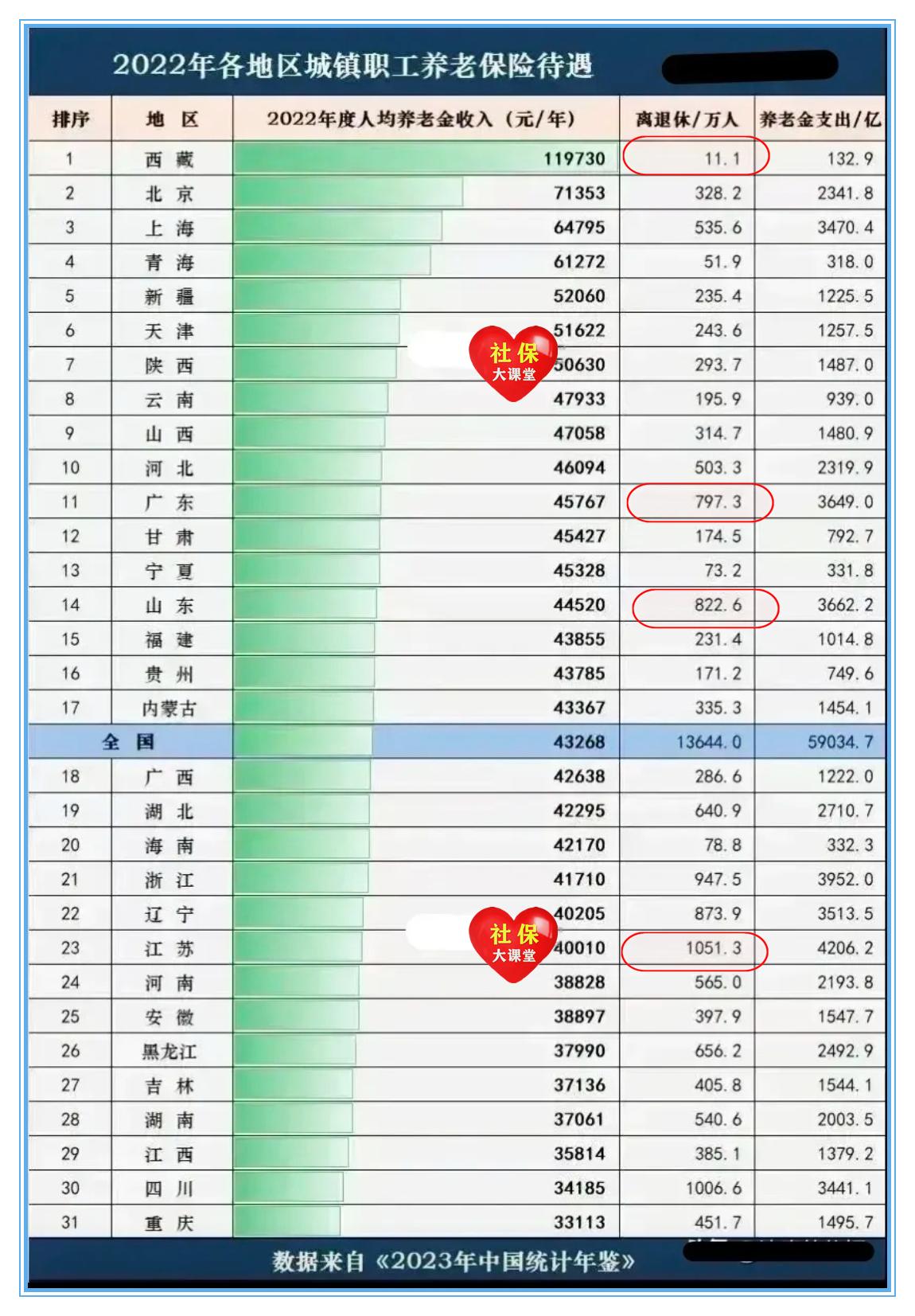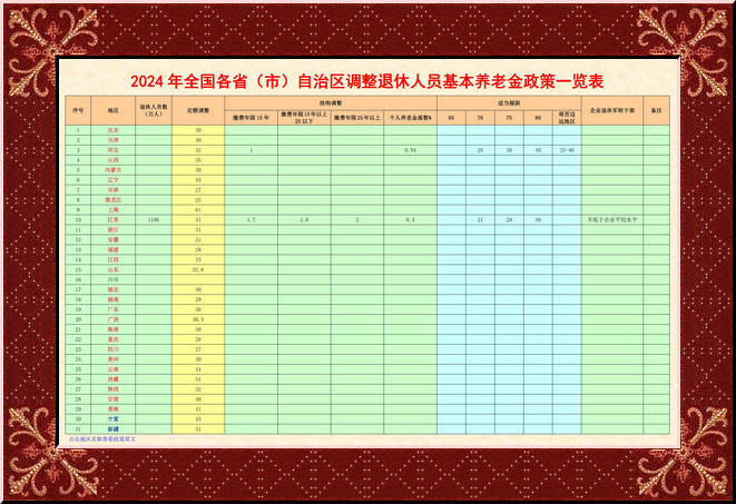 2024各地區(qū)退休人員養(yǎng)老金定額調(diào)整排序