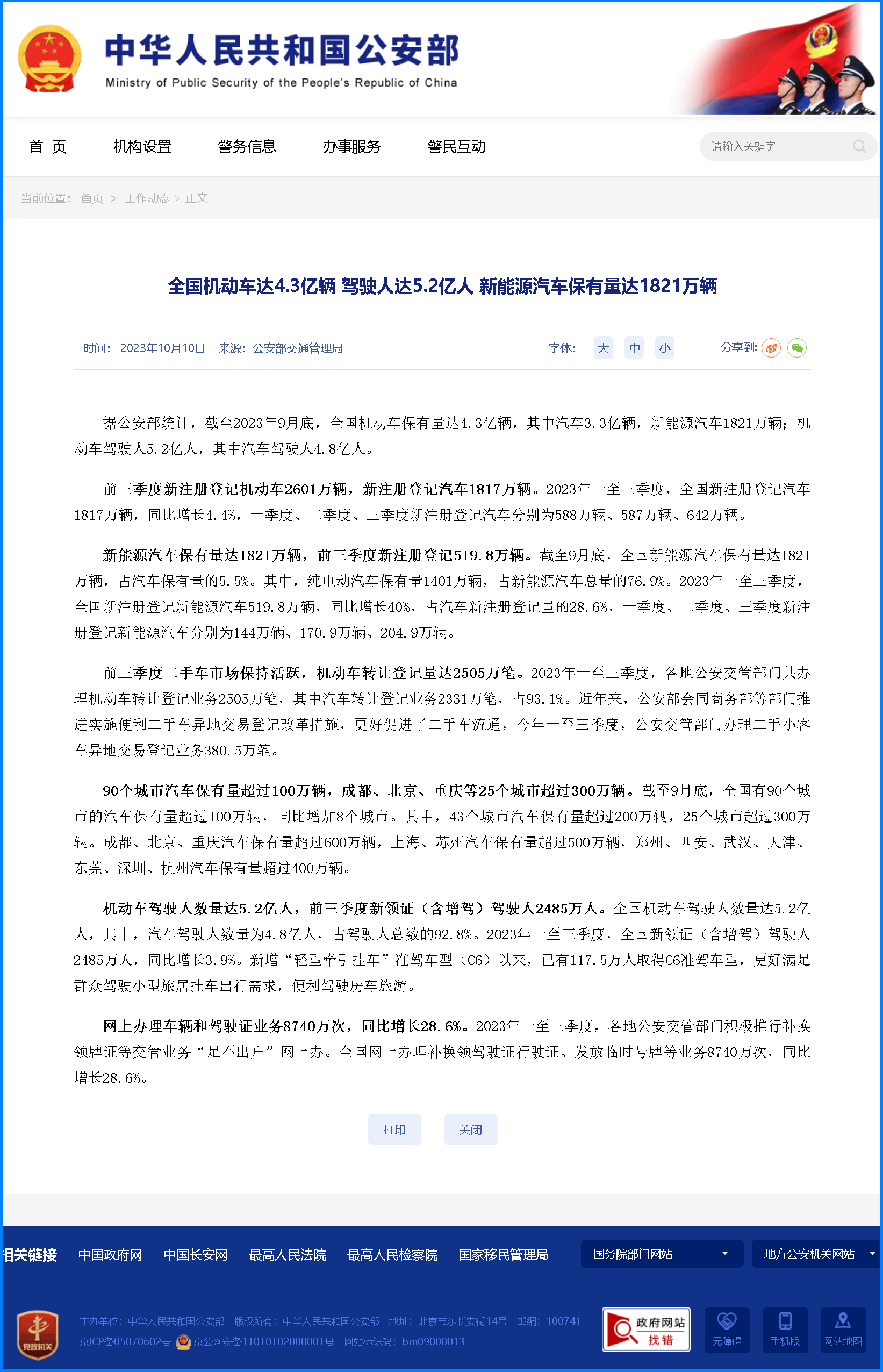 2023年上半年全國機(jī)動(dòng)車達(dá)4.26億輛 駕駛?cè)诉_(dá)5.13億人 新能源汽車保有量...